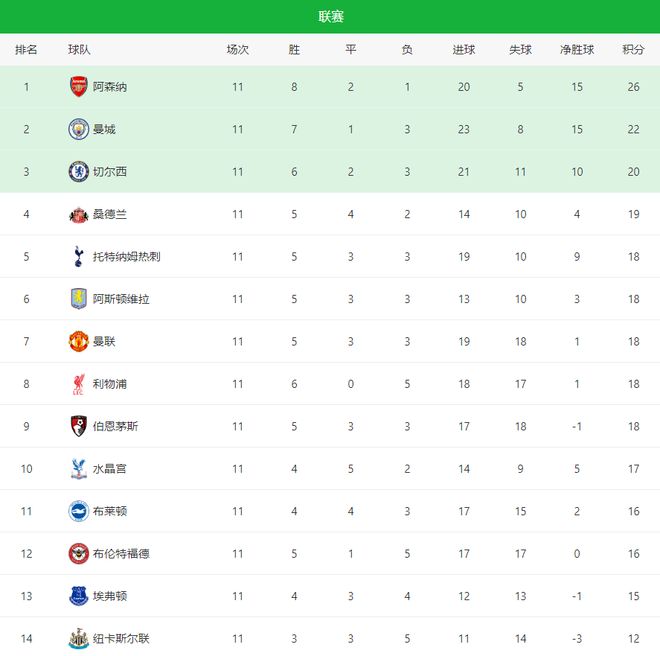 随着国家队比赛日的到来,英超也暂停了他们的“演出”,11轮联赛战罢,看看目前他们的积分榜,大家必定会觉得相当的好玩,更是五大联赛独一份,五支球队同积18分,第2名到第12名分差仅仅只有6分,这绝对是英超历史前11轮竞争最为激烈的一个赛季。没有一家独大,前十的球队整体水平是那么的接近,每一场比赛所谓的英超豪门都有可能分分钟被小球分击败,一场比赛的胜负,就可能从第12名杀进前四;而输一场,也可能从欧战区掉到下半区。联赛的争四、争欧联与争欧协已经卷得不成样了。