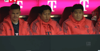 替补待命,伊藤洋辉、金玟哉、基米希坐在替补席