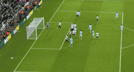 第12分钟,纽卡斯尔第一次威胁曼城的球门,沃尔特马德的头球攻门力量十足,多纳鲁马迅速倒地,做出不可思议的扑救。
