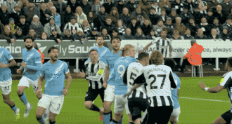 曼城的球迷仅仅高兴了2分钟,纽卡斯尔卷土重来,沃尔特马德头球摆渡,吉马良斯头球击中横梁,巴恩斯补射,梅开二度。